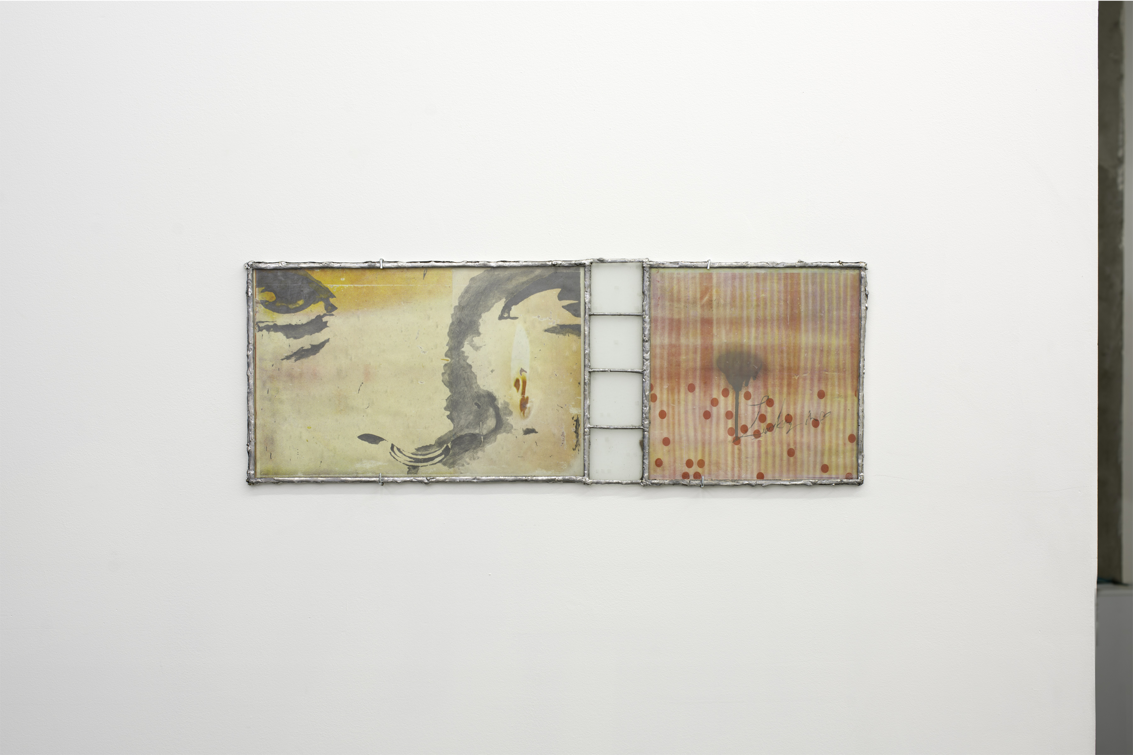 Ruby Sumners works primarily in print, stained glass, and drawing based on automatic writings and sketches rooted in diaristic intention. Her stained glass works collage together risograph prints and jagged glass cut-offs softened with extra amounts of solder. The loose narratives and associations created by combining Tiffany-style stained glass methods and modern diy printmaking techniques are rhythmic in nature and pattern. This is interleaved with fractured segments obscuring personal imagery with the diffuse nature of found glass.