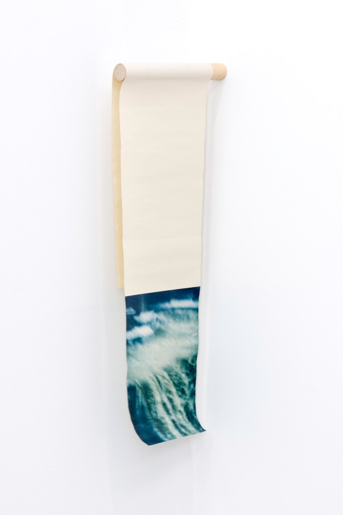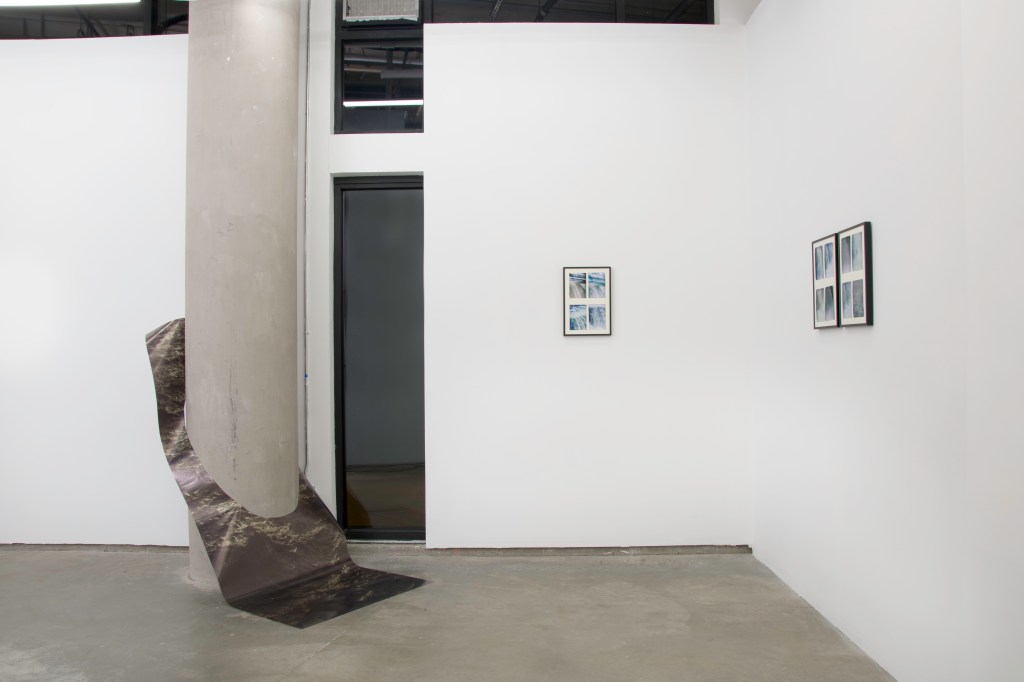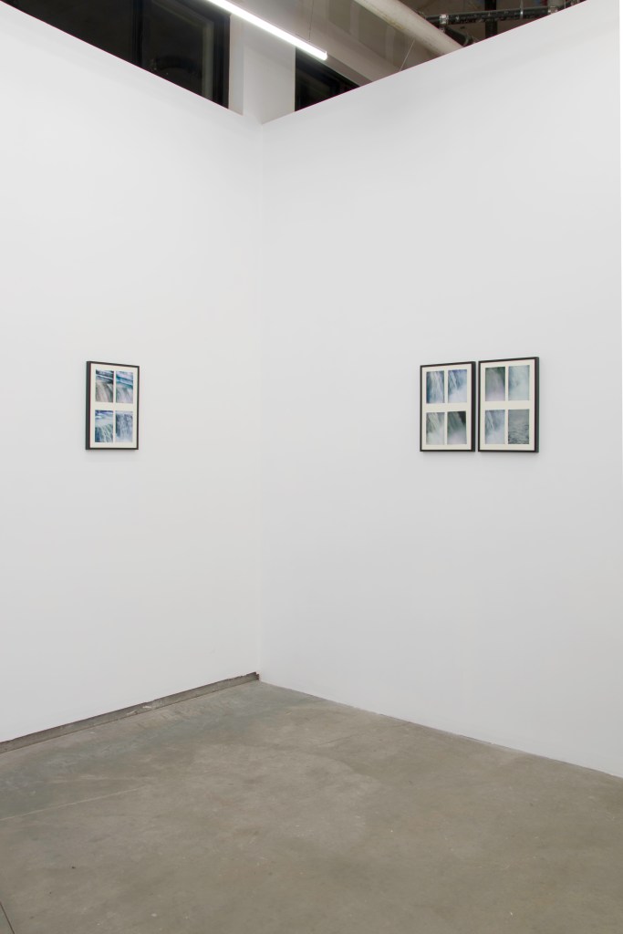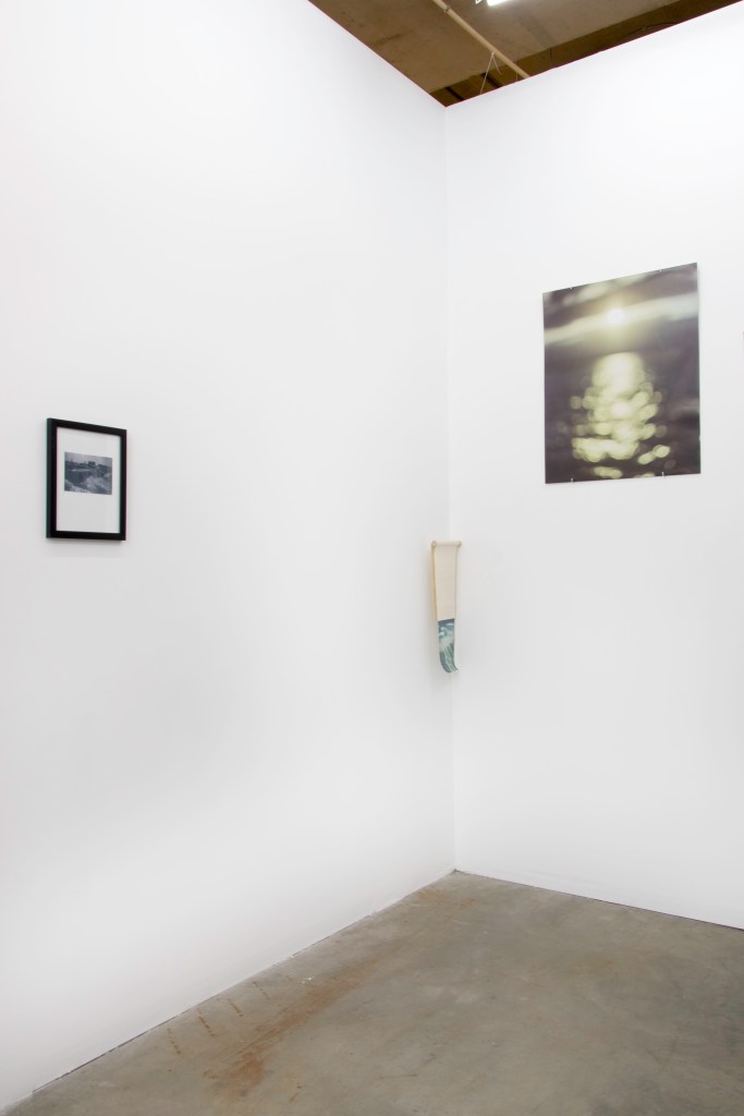 Denver photographer John Lake consistently returns to his hometown of Rochester, New York to take pictures of a city he describes as “a mixed bag”. He captures photographs of waves and frozen ice bubbles that undulate endlessly on the surface of Lake Ontario pointing his film camera both above and below the horizon line. These images are contrasted in subject matter by the occasional human face or the portrait of a dam with a rushing waterfall. Moments of stillness and stagnation are placed in conversation with boisterous energy through a muted grey color palette as he plays with depth of field and perception. This exposes what is visible within the psyche of a rust belt city constantly churning while trying to recapture its essence. In his newest installation, a cement pillar pierces an elongated green tinted photograph of Lake Ontario. This piece points to how we think of water as fluid and reacting to its environment and eventually wearing its own path over time, much like the South Platte River that can be seen from the adjacent window. However, with a more surgical gesture, Lake has removed a chunk of the water from the image acknowledging how many of the man-made structures around Rochester interject themselves into the bodies of water.